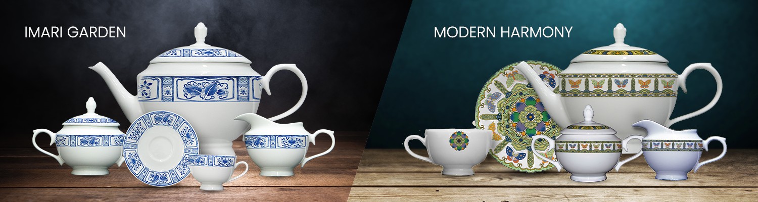 Imari Garden மற்றும் Modern Harmony உயர்தர பீங்கான் மேஜை பாத்திரங்கள் கடைமுடிவான உணவு அனுபவத்திற்கான சரியான துணையாகும்.